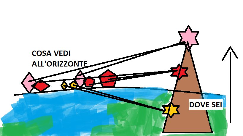 • la vista all’orizzonte: pur sembrando la linea dell’orizzonte piatta, più saliamo in altitudine più vedremo cosa c’è in lontananza perché vedremo anche gli oggetti che sono dall’altra parte della sfera terrestre;