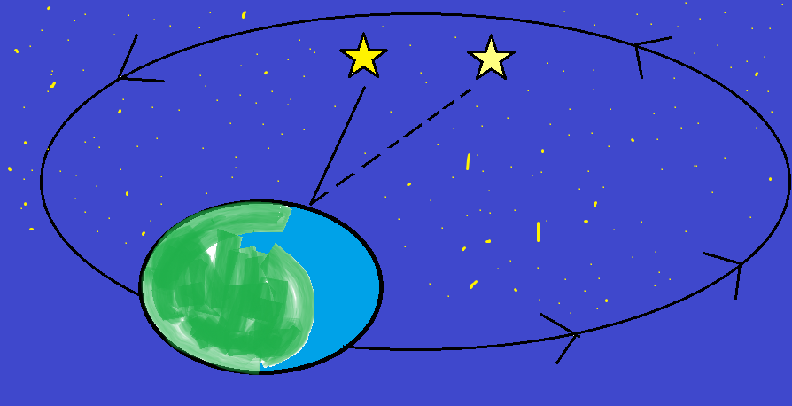 • aberrazione della luce degli astri x moto di rivoluzione: la luce di una stella arriva dritta perpendicolarmente sulla Terra ma, dato il moto di rivoluzione intorno al Sole, noi ci muoviamo rispetto la stella fissa, quindi la luce sembra che venga da una zona di cielo leggermente diversa da dove si trova realmente l’astro. L’angolo compreso tra il punto in cui apparentemente si trova una stella, l’osservatore e la vera posizione della stella prende il nome di “angolo di aberrazione”;