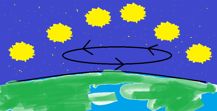 • apparente spostamento diurno dei corpi celesti: dipende dalla Terra che, come se fosse un pallone, gira intorno a se stessa e al Sole (moti di rotazione e rivoluzione), anche se a noi sembra che siano il Sole e le altre stelle a muoversi;