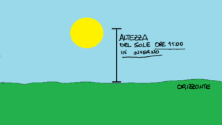 1) L’altezza del sole dalla linea dell’orizzonte (vedi figura) nei vari giorni dell’anno (considerando sempre la stessa ora) non è costante, ma questa altezza è massima in estate e minima in inverno.